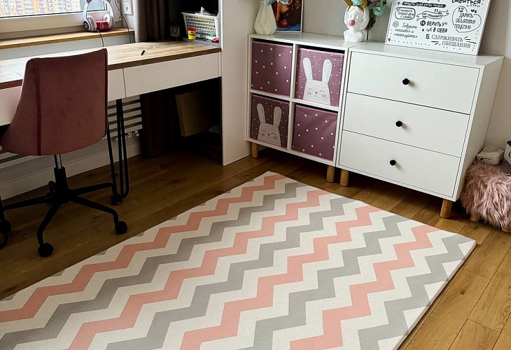 Безворсовый ковер на полу делает детскую чище и безопаснее