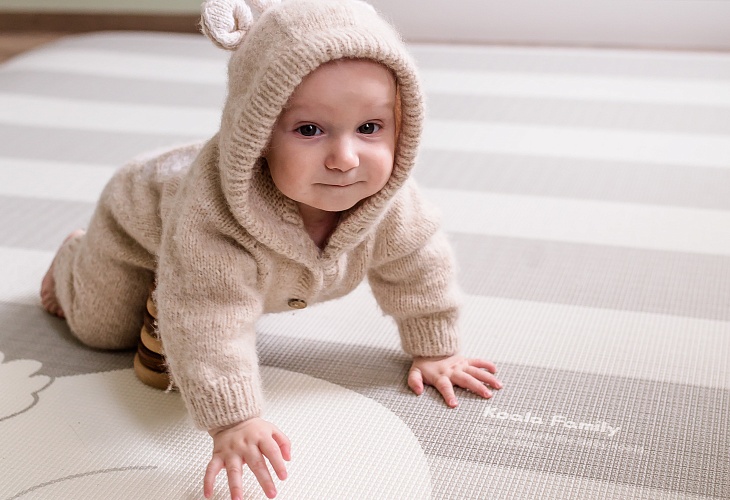 Яркие цветные изделия с мультяшными принтами в разы повышают интерес малыша к веселым, занимательным играм. Практичные варианты спокойных, пастельных тонов, благотворно воздействуют на психоэмоциональное состояние крохи. Такие коврики идеально подходят, как для первых выкладываний на животик (tummy time), так и ползания. Их поверхность не должна быть очень мягкой, чтобы ручки и ножки не проваливались и можно было свободно двигаться. Не подходят и слишком твердые покрытия, учитывая, что малыш может упасть и удариться.