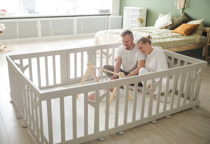 В период активного изучения мира детский манеж становится способом немного ограничить пространство ребенка, при этом оставить ему поле для игр. Конструкция представляет собой невысокий заборчик, который устанавливается в удобном месте: