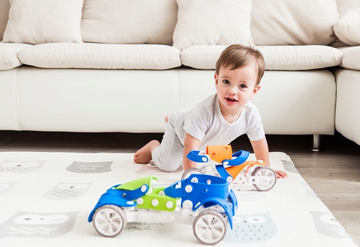 - Мальчики часто бывают активными, подвижными и любят экспериментировать. Кроме того, существует специфика мальчиковых игрушек - острые детали конструкторов, железные колеса машинок. Ковер с пленочным покрытием (пищевой полиэтилен, XPE) может быстро прийти в негодность, потому что поверхность таких ковров непрочная.