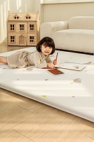 Игровой детский коврик с нежным принтом с одной стороны и нейтральным геометрическим рисунком с другой придется по вкусу и детям, и взрослым.
